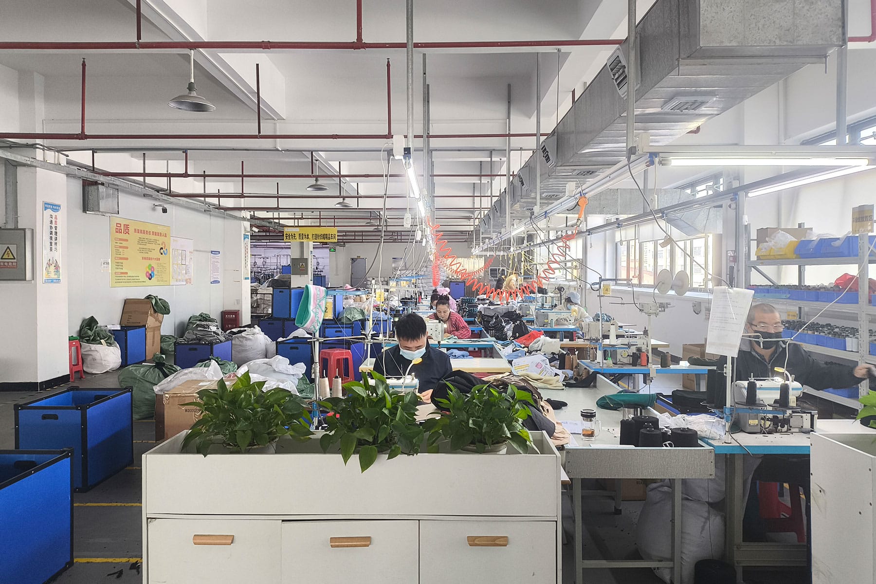 We manage knitting, finishing, and production scheduling.